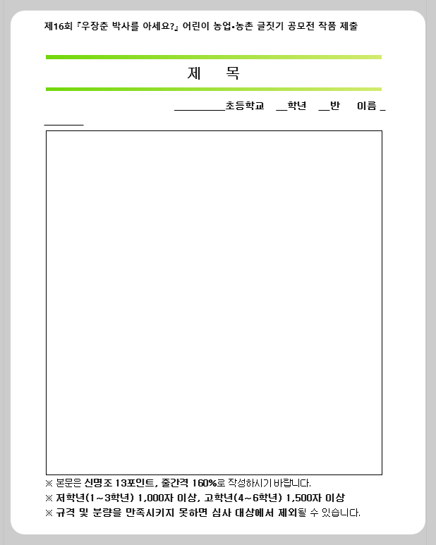 제16회 어린이 농업·농촌 글짓기 공모전 ✍️