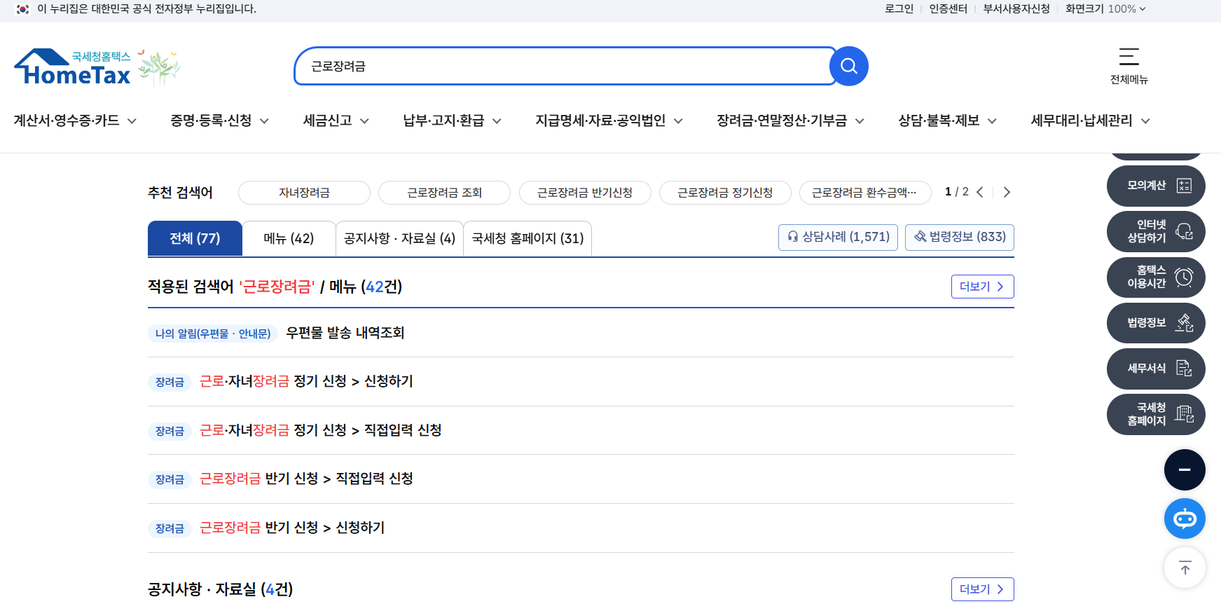 - 홈택스 홈페이지에 접속합니다.